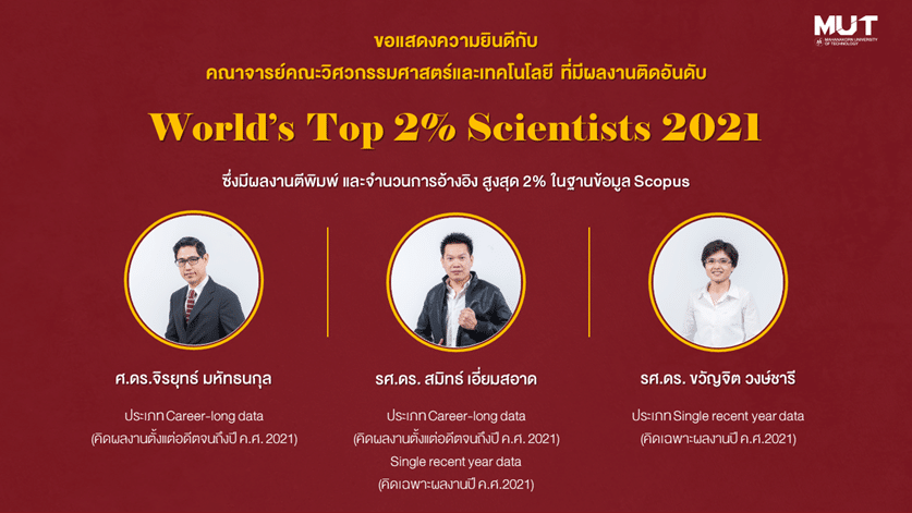 มีผลงานติดอันดับ World’s Top 2% Scientists 2021 ซึ่งมีผลงานตีพิมพ์ และจำนวนการอ้างอิงสูงที่สุดในโลก