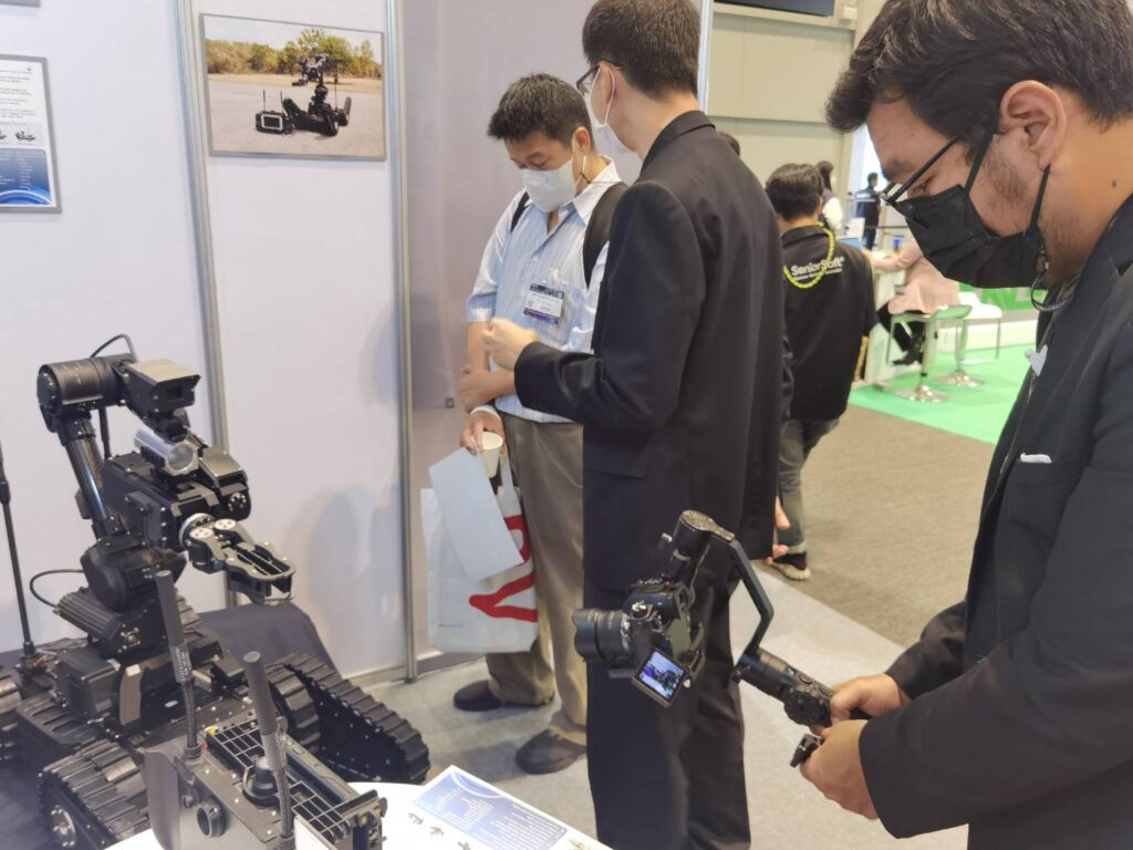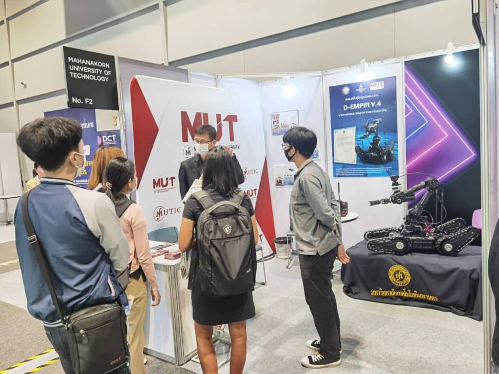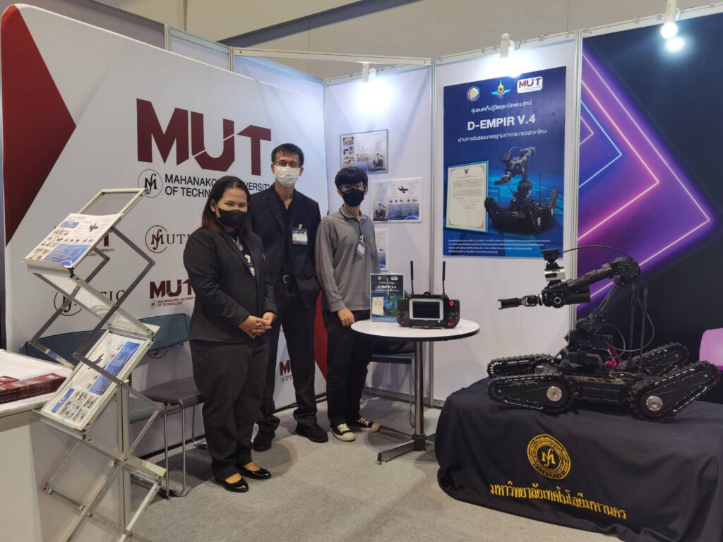 มหาวิทยาลัยเทคโนโลยีมหานคร ร่วมแสดงผลงานใน Byond Mobile 2022 ซึ่งจัดขึ้นระหว่างวันที่ 28-29 กันยายน 2565 ณ สามย่านมิตรทาวน์ ฮอลล์ กรุงเทพฯ โดยนำหุ่นยนต์เก็บกู้วัตถุระเบิด ขนาดเล็กรุ่น D-EMPIR V.4 ซึ่งเป็นความร่วมมือระหว่างสถาบันเทคโนโลยีป้องกันประเทศ (DTI) กับมหาวิทยาลัยเทคโนโลยีมหานคร ผลงานความสำเร็จและความภาคภูมิใจของประเทศไทยที่เราสามารถผลิตหุ่นยนต์เก็บกู้วัตถุระเบิดได้โดยฝีมือคนไทย 100% จนได้รับการรับรองมาตรฐานจากกระทรวงกลาโหมเพื่อยืนยันประสิทธิภาพใช้งานได้จริงเทียบเท่ากับของต่างประเทศ