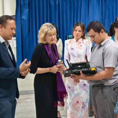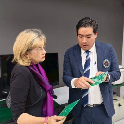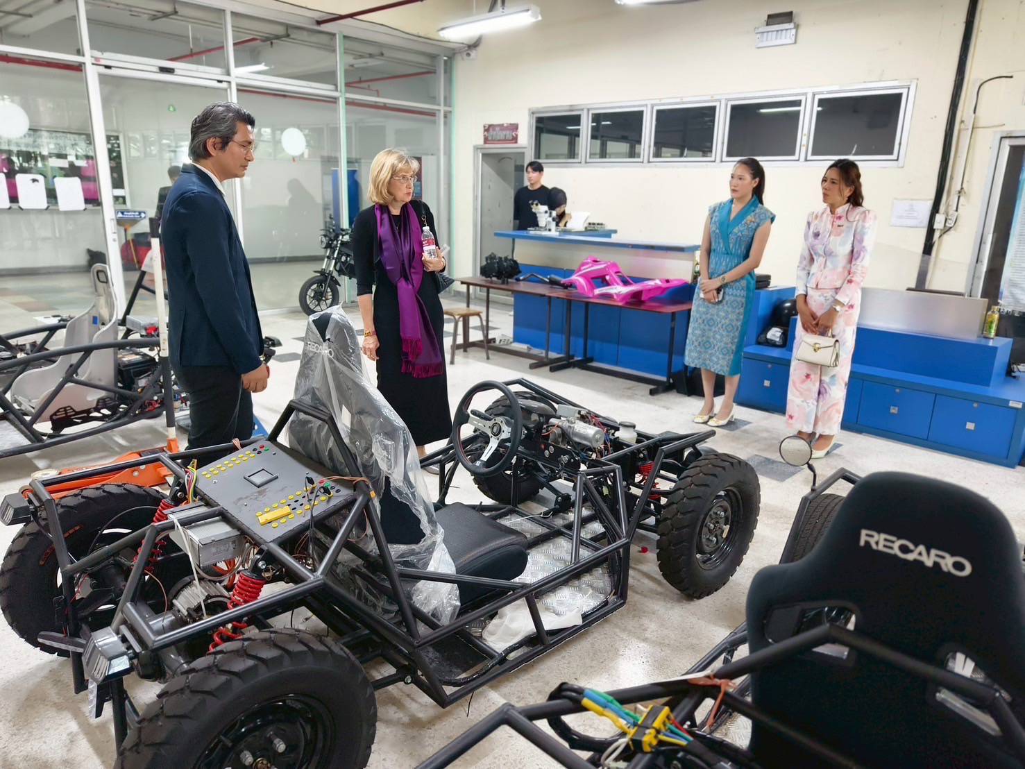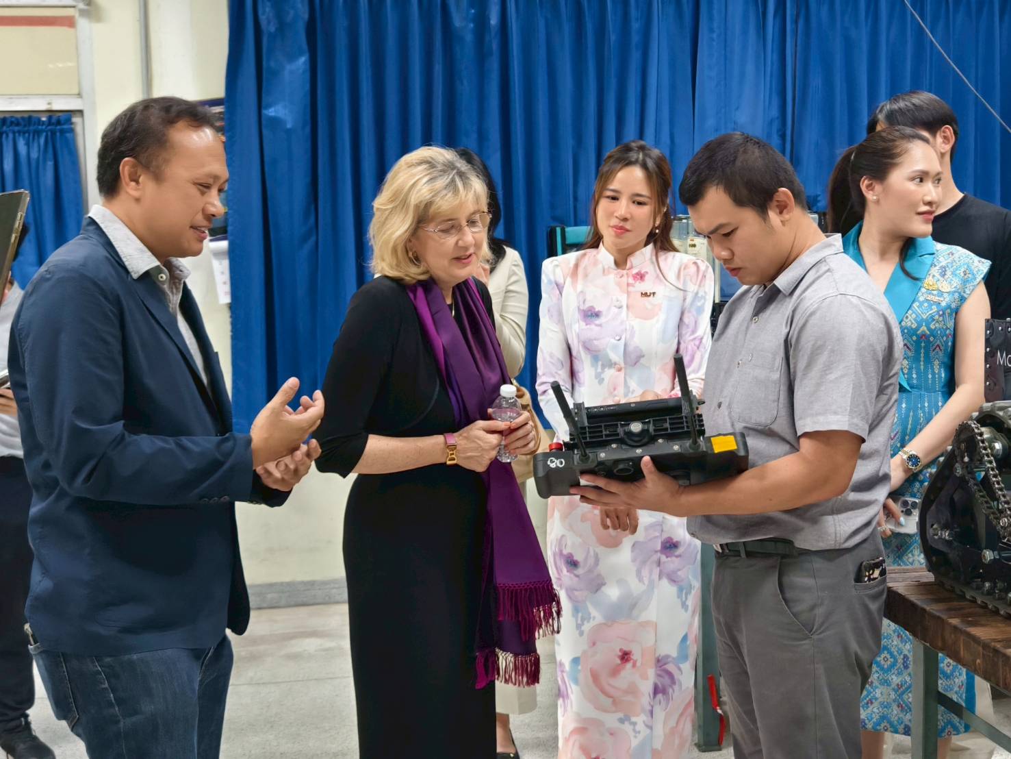 ในการเยือนครั้งนี้ คณะเอกอัครราชทูตฯ ได้รับฟังบรรยายสรุปเกี่ยวกับบทบาทของมหาวิทยาลัยฯ ในการส่งเสริมงานวิจัยและนวัตกรรม โดยเฉพาะเรื่องหุ่นยนต์ตรวจการณ์เก็บกู้วัตถุระเบิดขนาดเล็ก D-EMPIR เรื่องพลังงานสะอาด และแนวทางสร้างความร่วมมือระดับนานาชาติ ในโอกาสได้เยี่ยมชมห้องปฏิบัติการและศูนย์ Mahanakorn National Semiconductor Training Center ตลอดจนห้องปฏิบัติการทันสมัยหลายแห่งของมหาวิทยาลัยฯ